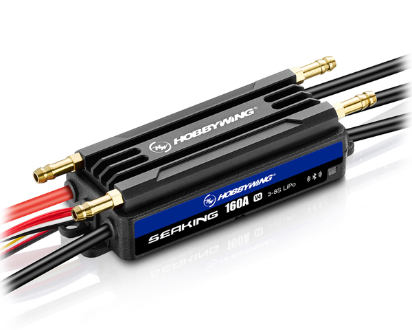 Ο HOBBYWING SEAKING V4 160A είναι ένας πολύ έξυπνα σχεδιασμένος ρυθμηστής ταχύτητας που μπορεί να συνδεθεί μέχρι και με 8s - 33,6V μπαταρία ενώ ταυτόχρονα διαθέτει και κύκλωμα BEC για τροφοδοσία του δέκτη και τον σέρβο με ρεύμα που φτάνει τα εντυπωσιακά 8Α, ενώ το ρεύμα τροφοδοσίας του μοτέρ στιγμιαία μπορεί να φτάσει τα 800Α. Η λίστα με τα χαρακτηριστικά του συνεχίζετε με το ενσωματωμένο καταγραφέα πληροφοριών, Data Logging, που μπορεί να διαβαστεί μέσω εφαρμογής για κινητά και το ενσωματωμένο Bluetooth που ο ρυθμιστής διαθέτει. Όσοι ασχολούνται με τα ταχύπλοα σκάφη σίγουρα καταλαβαίνουν πόσο ιδιαίτερα και χρήσιμα είναι όλα αυτά στο σωστό στήσιμο ενός υψηλών επιδόσεων ταχύπλοο σκάφος.